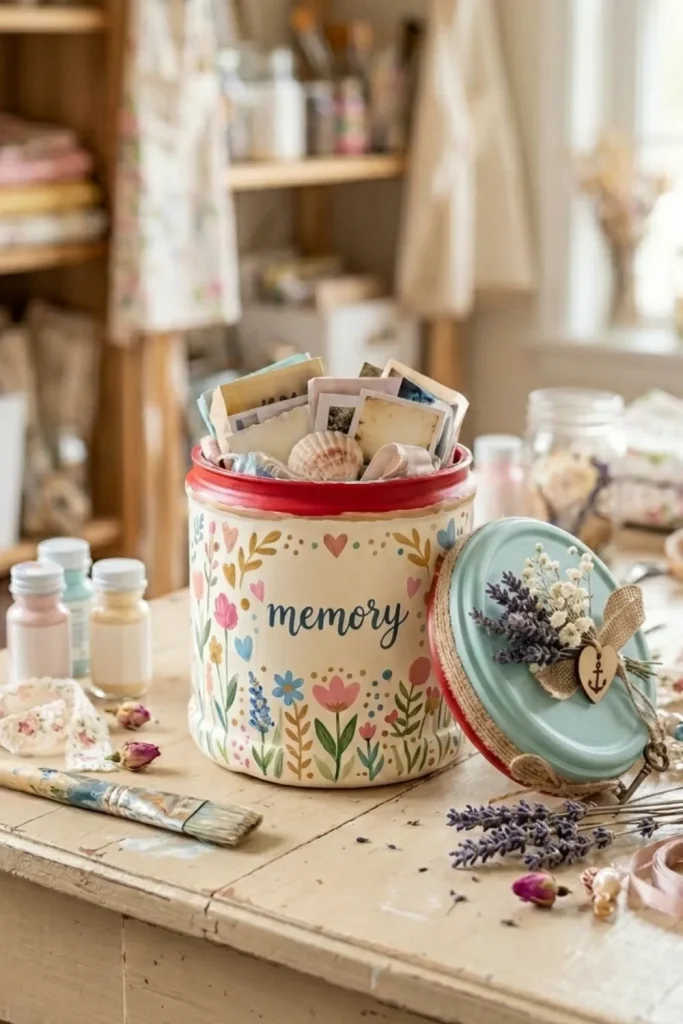 Turn a Folgers coffee container into a mini memory jar for your favorite little moments. Clean the can, paint or wrap the outside, and seal the lid well so it feels like a tiny treasure chest. Cut small slips of paper and drop in notes about good days, funny quotes, or tiny wins. Shake it once in a while and pull out a random memory to read. This simple jar turns your coffee can into a personal highlight reel you can hold in your hands—perfect for birthdays, leaving‑home gifts, or “bad day” pick‑me‑ups.