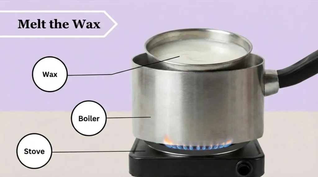 Fill a heat-proof beaker with the desired amount of wax and place it on a smooth-top burner. Heat the wax at a medium-high temperature until it completely melts, occasionally stirring to ensure even melting.
